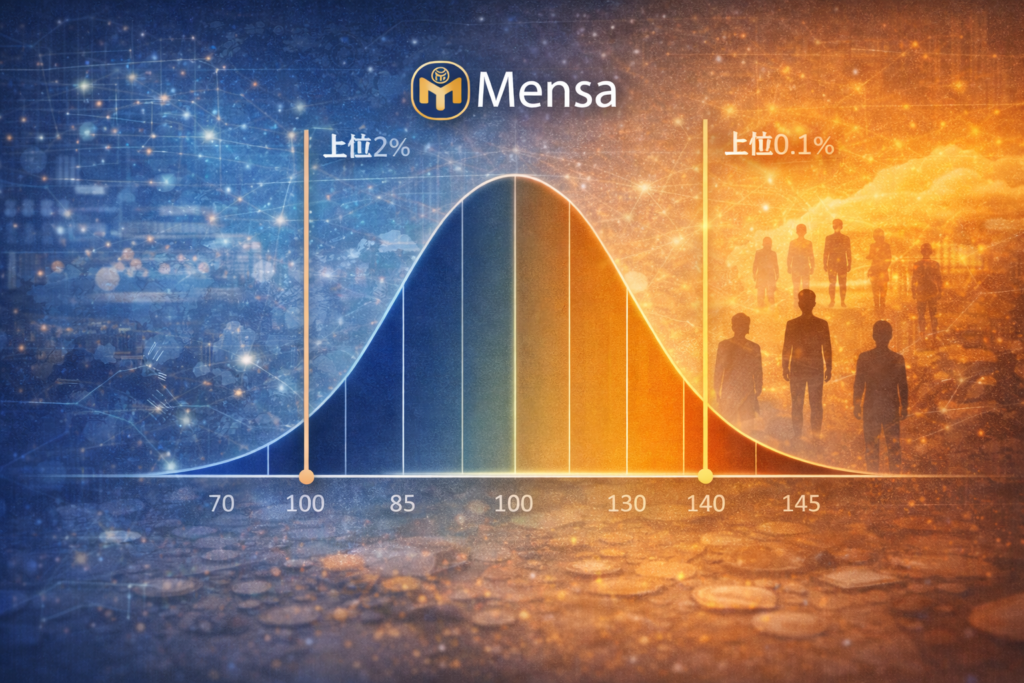 ここでは、メンサ(MENSA)の入会基準を統計的に整理します。「IQはいくつあれば入れるのか?」という疑問は非常に多く、検索ニーズも高いポイントです。